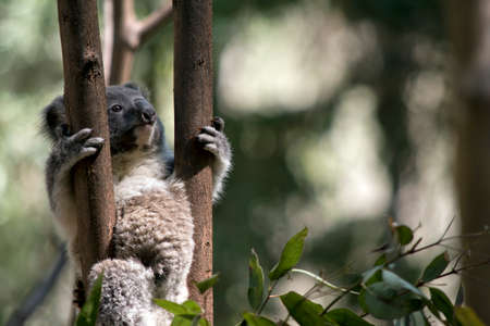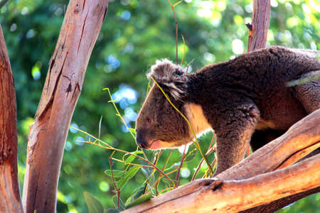 Koala in the wild with gum tree on the Great Ocean Road, Australia. Somewhere near Kennet river. Victoria, Australia.