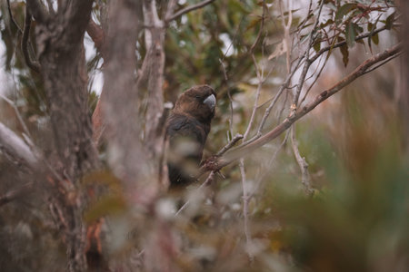 Glossy Black Cockatoo eating in a tree.