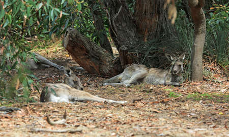 Kangaroo resting under tree - Eastern Grey Kangaroo - Anglesea Golf Course, Victoria, Australia