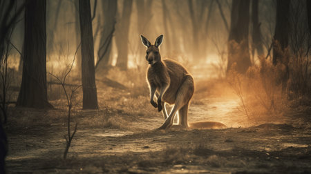 Kangaroo runs from the hot forest. Generative AI