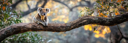 A captivating portrait of a charming koala, nestled amongst vibrant autumn leaves in a lush Australian forest Its curious gaze and endearing charm are a heartwarming reminder of this iconic marsupial's natural beauty and vulnerability AI Generative