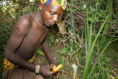 Lake Eyasi, Tanzania, 11th September 2019: Hadzabe hunter in the nature of norther Tanzania