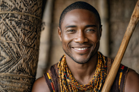 African men smiling in traditional clothing, showcasing indigenous culture generated by artificial intelligence