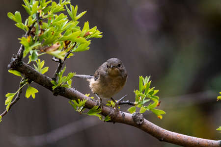 Adorable Buff Breasted Flycatcher bird perched on estuary branch while foraging through the trees.