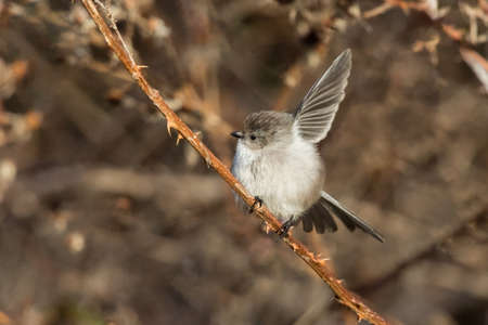 A Captivating Encounter: Magnifying the Beauty of a Gray Bird Perched on a Brown Branch