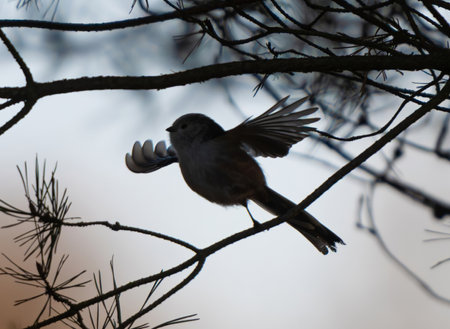 Aegithalos caudatus he sits on a snowy branch and wants to take off, the best photo.