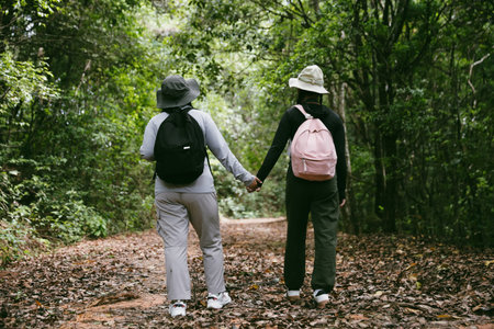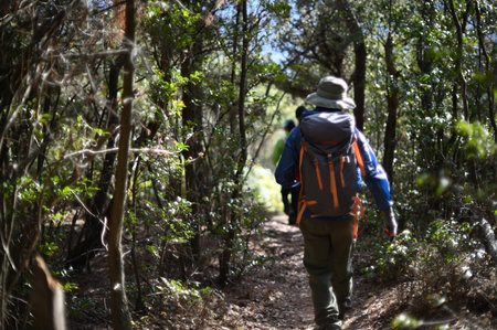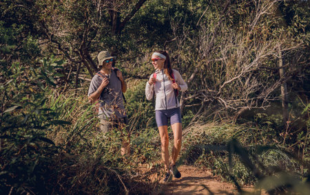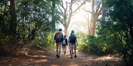 Hikers walking along a forest trail enjoying nature and adventure outdoors