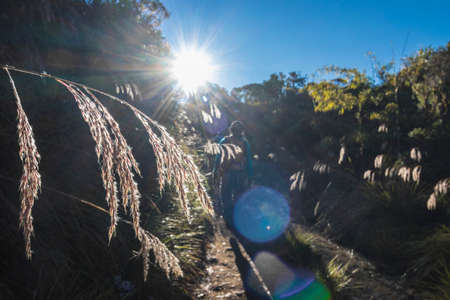 A female hiker bush walking in the Blue Mountains, Australia