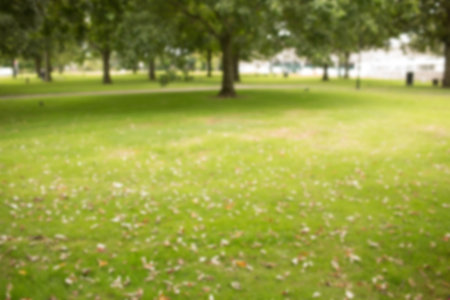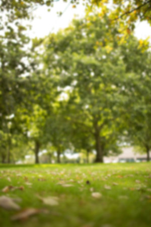 Blurred background. Fall, backgraund, walking, kids, park, city, green. Blurred background of a park in the city with walked kids. Weekend time.