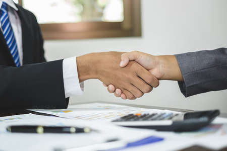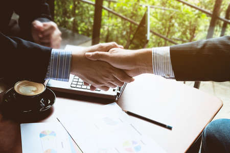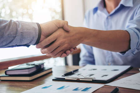 handshaking of agreement to make a contract starting new financial business.