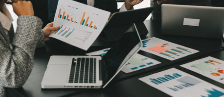 Business team colleagues meeting to conference professional investor working a new marketing business strategy project discussion and analysis data chart and graph, finance and accounting concept.