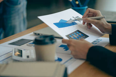 Business people working together discussing plans and discussing financial diagram, Teamwork, Success