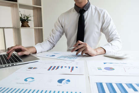 Business People Meeting to analyse and discuss and brainstorming the financial report chart data in office Financial advisor teamwork and accounting concept.