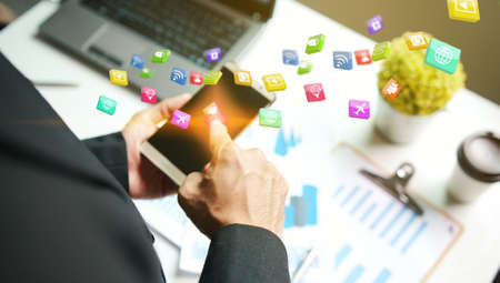 Laptop screen with app icon on the screen. Technology concept.
