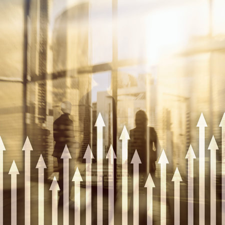 Financial growth arrows on blurred background. Business, Investment, Trading concept. Website header banner.