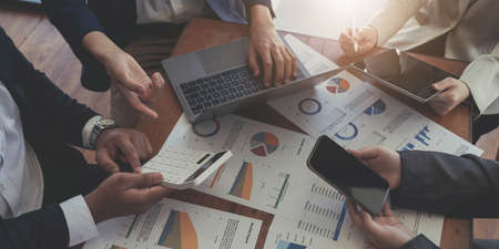Business consultants while working in a team.A group of young workers at a meeting in the company conference room. Business concept.