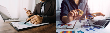 Businessman working on financial sales data analysis and economic growth chart and blockchain technology on financial analysis and marketing sales strategy in the office.