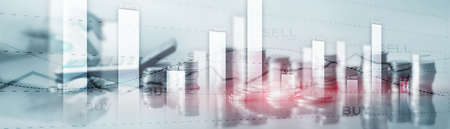 Buy and sell finacial concept. Business Graph Stock Market chart. Digital charts and screen interface. Panoramic banner.