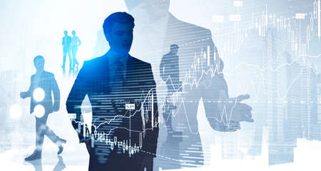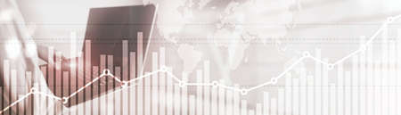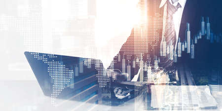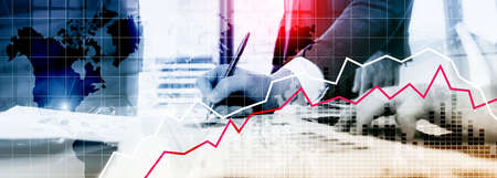 Business finance growth graph chart analysing diagram trading and forex exchange concept double exposure
