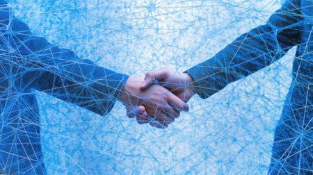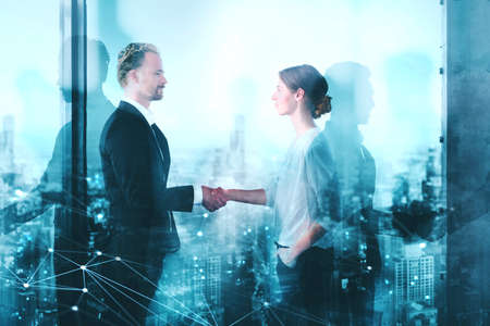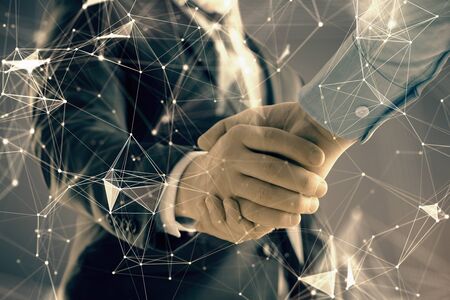 Handshake of two businessperson in office with network effect. concept of partnership and teamwork