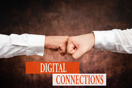 Inspiration showing sign Digital Connections. Internet Concept the online way to explore and build relationships Two Professional Well-Dressed Corporate Businessmen Handshake Indoors