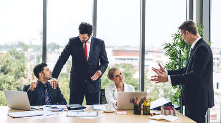 Businessman boss blame employee on table workplace in office,Concept boss blaming employee