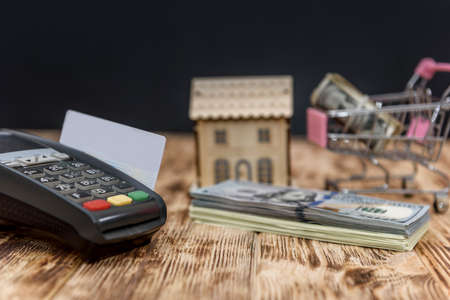 Real estate business profit and loss report business graph.Pay for home bills by credit card.