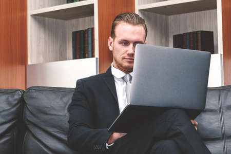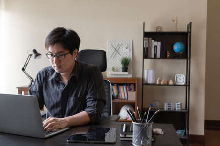Business man, E-learning online in the digital age Knowledge education and Training Seminar Personal Development. Concepts of increasing knowledge, self-developmentof and learning at home