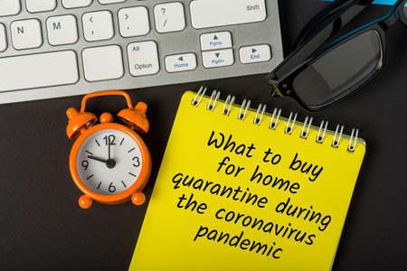 Covid-19 - What to buy for home quarantine. Pandemic Covid 19 Coronavirus outbreak concept