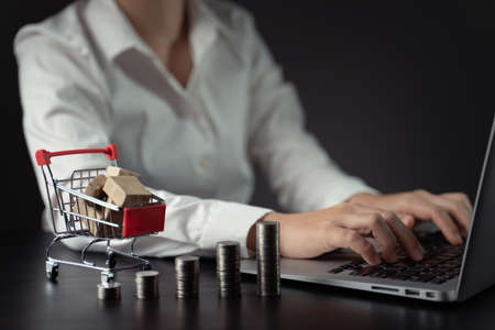 sale of furniture in the store, the buyer pays the cashier for his goods. dollar in hand