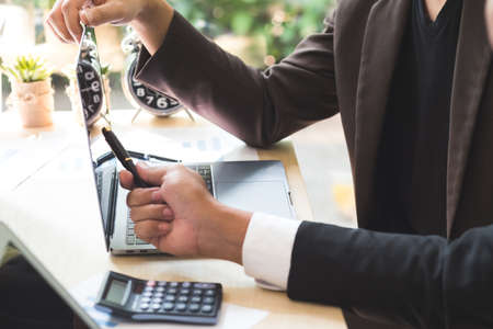 Businessman or Professional Entrepreneur calculate business profits, Trade profit, tex. Business development to success and growing growth concept.