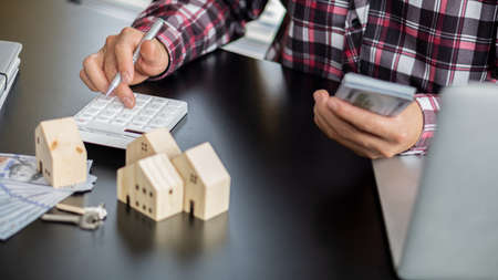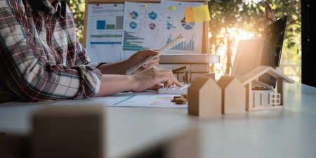Real estate agents and borrowing, debt contracts and housing investments. Loan Agreement for Investors or Buyers to sign for bank approval, idea of ​​renting a home and selling a home.