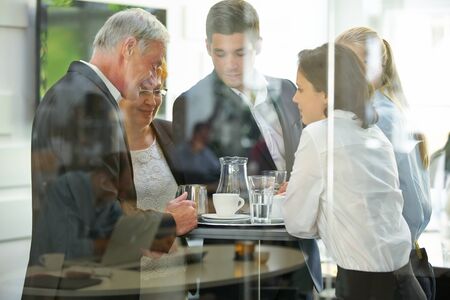 Business people are standing together for a break