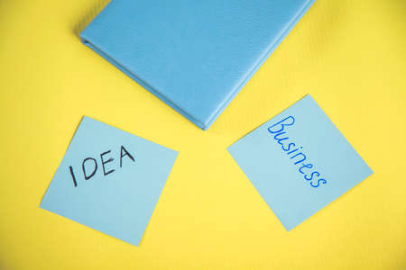 idea and business text on paper with notepad