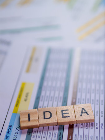 IDEA text with colorful wood puzzle pieces on gray background. logical thinking, business logic, Conundrum, inspiration, solutions, rational, mission, success, goals and strategy concepts