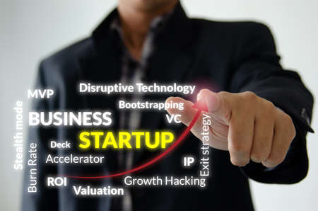 Concept of a new startup business venture. The process includes innovation, setting targets, securing investment, and forming partnerships for a successful company launch.