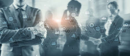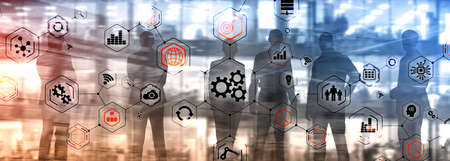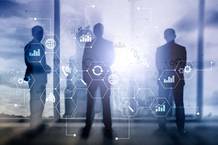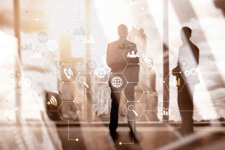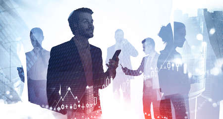 Abstract business background. Universal Wallpaper Finance concept. Silhouettes of people mixed media futuristic. Idias mission innovation