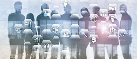 Universal business background for your business. Presentations for your site. Icons virtual screen.