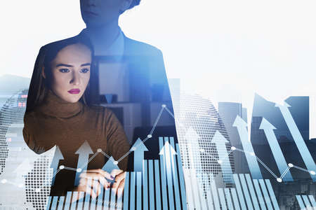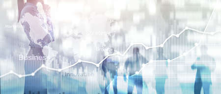 Business finance growth graph chart analysing diagram trading and forex exchange concept double exposure