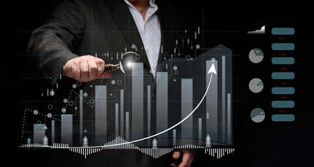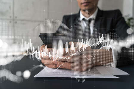 business finance technology and investment trading trader investor. Stock Market Investments Funds and Digital Assets. businessman analyzing forex trading graph financial data.