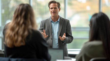 A financial advisor teaching students about money management and investment strategies. AI generated