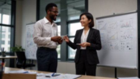 Two professionals collaborate during the onboarding process, exchanging ideas and insights.