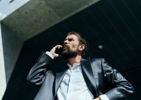 business man in a suit talking on the phone outdoors business manager executive