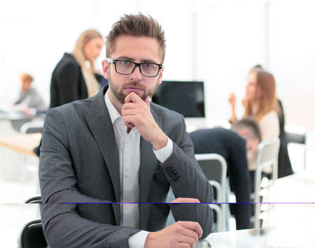 successful young businessman sitting at an office Desk.