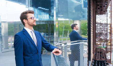 successful elegant fashionable businessman in business district
