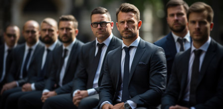 Group of Men in Formal Attire Standing Together in Urban Setting During Daylight