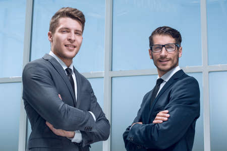 Two Business Man Happy Smile Standing At Modern Office, Businesspeople Team
