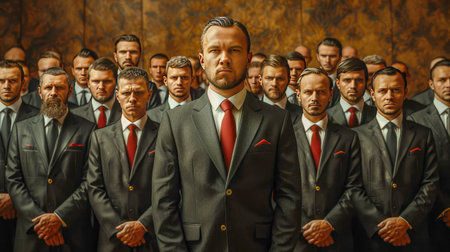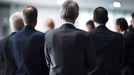 An AI generated illustration of a rear view of professionally dressed individuals in suits and ties