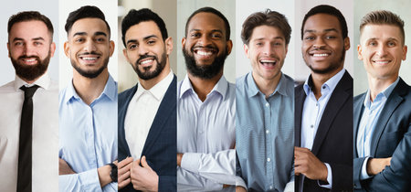 Collage of Diverse Men in Business Attire Smiling and Showcasing Teamwork Spirit Generative AI