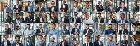 A mosaic collage showcases successful male businessmen of diverse ethnicities and ages, representing a multicultural corporate team